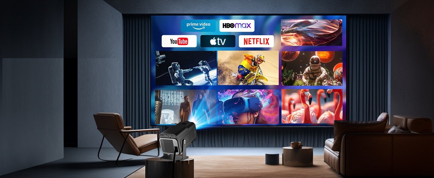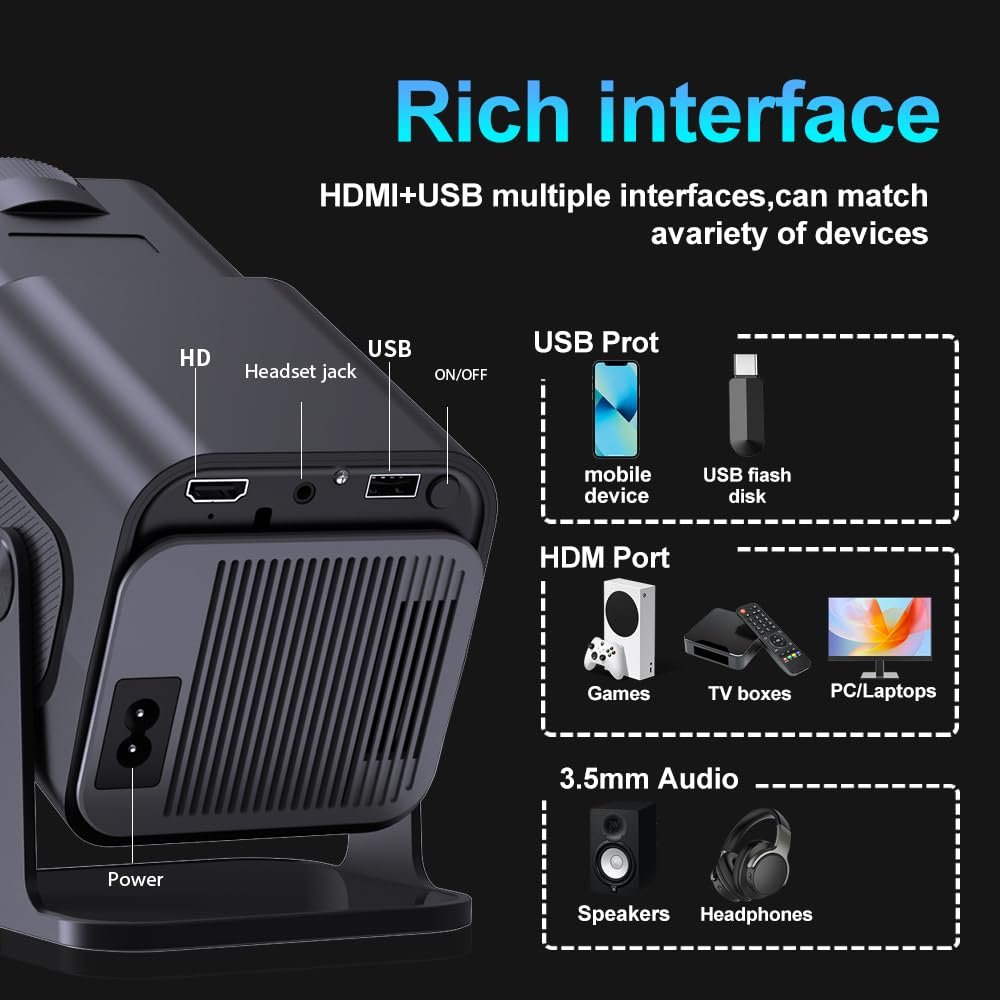 Erleben Sie atemberaubende 1080P Full HD Klarheit mit 4K-Unterstützung, WiFi 6 und Bluetooth 5.0 für nahtloses Streaming. Genießen Sie eine 150″ Großbildprojektion, automatische Keystone-Korrektur und HiFi-Stereolautsprecher in einem kompakten, 180° drehbaren Design. Perfekt für Filme, Gaming und Präsentationen jederzeit und überall!